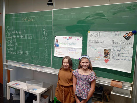 Die Fuchsklasse (4a) hat im neuen Schuljahr Elena als Klassensprecherin gewählt. An ihrer Seite unterstützt sie Maja als neue Klassensprecher-Stellvertreterin.